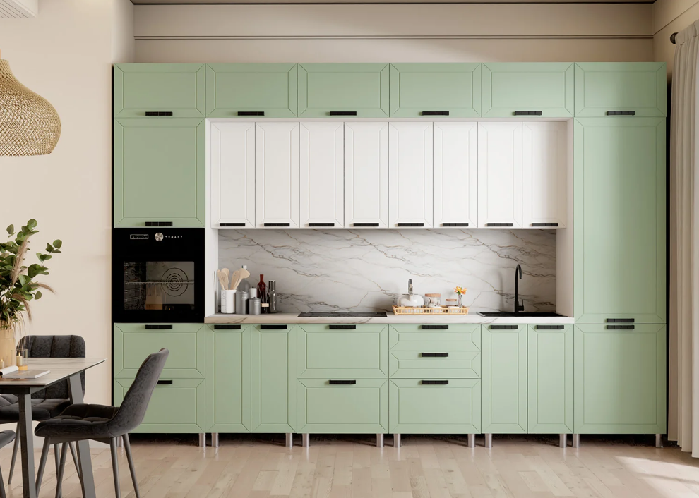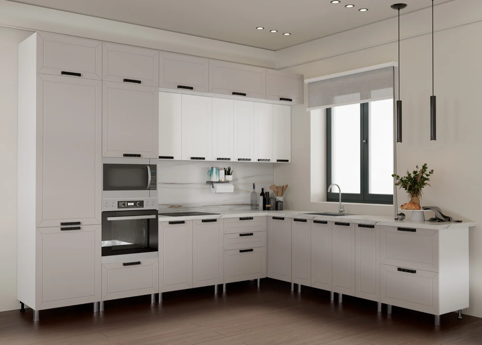 Особенность коллекции – изящная фрезеровка в виде геометричной рамки, из которой словно лучами расходятся тонкие линии.